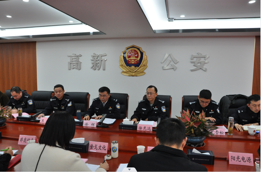 经侦支队政委徐光远、高新分局政委徐辉、纪委书记王俊等领导和企业代表出席了会议。会议由高新分局纪委书记王俊主持。