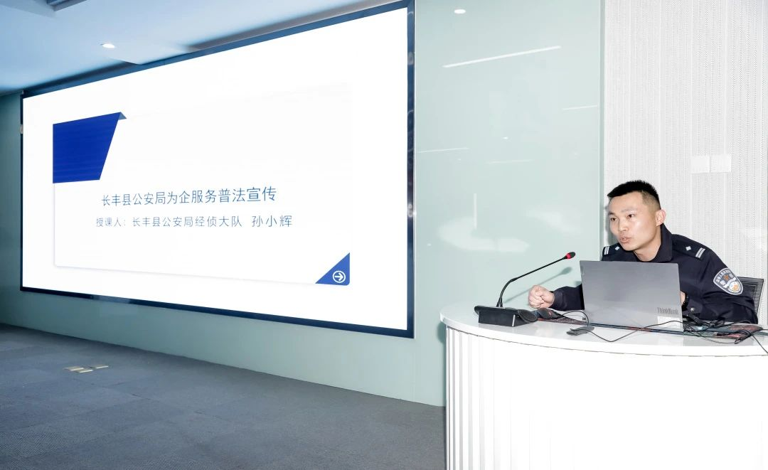 为进一步优化法治营商环境,促进民营企业健康发展,提升企业法治理念,长丰县公安局积极开展为企服务普法宣传活动,作为普法讲师,孙小辉副大队长以“2022年5月15日起施行78种经济犯罪案件立案追诉标准”为切入点,以案说法,详细剖析了标准修改的背景及经济犯罪侦查局管辖案件范围;以案施教,生动阐述了企业员工职业道德准则以及预防职务犯罪的重要性;以案释纪,针对员工在工作过程中可能涉及的职务侵占罪和挪用资金罪进行了详细解读;以案释法,结合《中华人民共和国刑法修正案(十二)》等法律条款,对企业内部易发生的经济犯罪案件进行了多角度阐释,为大家上了一堂生动的纪法课程。
