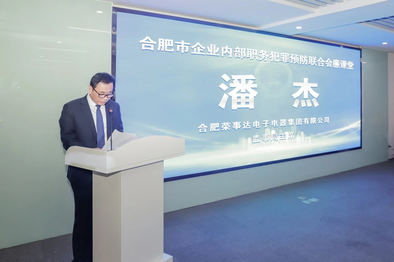 活动伊始,荣事达集团监事局主席潘杰代表潘保春董事长向大家表示热烈欢迎,并强调了开设企业内部职务犯罪预防“廉课堂”的重要意义,以及荣事达集团在内控合规建设上的主要举措和成果。潘杰主席表示:“‘廉课堂’让企业对职务犯罪的认知更加客观、清晰、全面,有助于树立依法合规经营的意识,掌握防控职务犯罪的方法和策略,积极开展企业内控合规体系制度建设、完备决策程序,从而达到有效预防企业内部职务犯罪的目的。希望大家能够学有所获、学有所用,共同营造公正、有序、法治化的营商环境,为经济社会繁荣稳定注入强劲动力。”