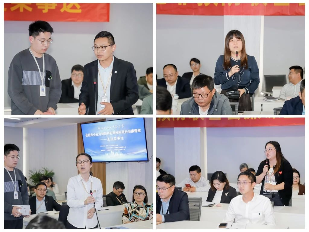 宣讲过程中还设置了精彩的圆桌论坛环节,现场参训人员围绕企业内部易发生的职务犯罪行为及防范举措,踊跃发言、积极讨论,针对大家的疑难和困惑,孙小辉副大队长、王鹏副主任以及刘革董事长积极回应、一一解答,现场学习氛围浓厚,进一步加深了大家对企业内部职务犯罪预防的理解。